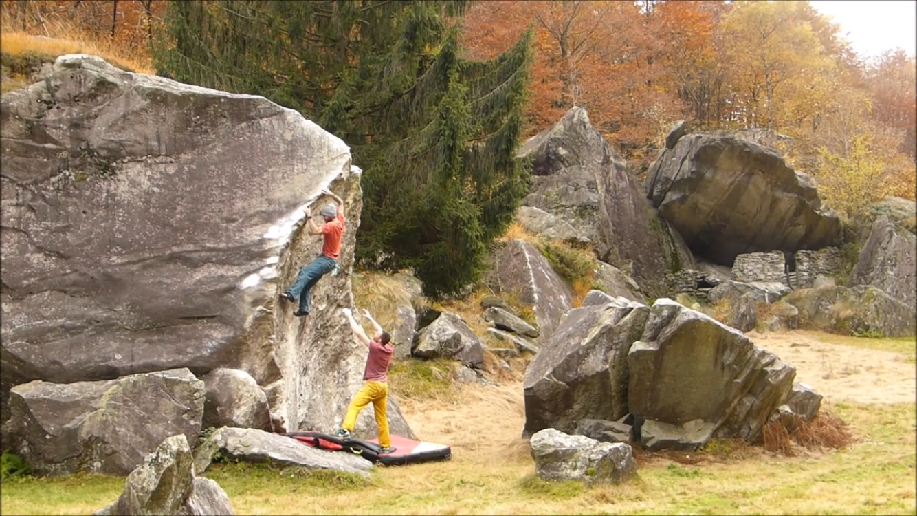 Schattental, is lower down that most of the bouldering at Chirinico. The name means shaded valley, owing to the fact that the sun never really shines there. So it’s pretty cold, especially in late October. The bouldering is excellent though, and definitely worth a visit, regarless of the temperature. The highlight for me was fiddly & delicate ‘Particle Elementare’ (f7a). This one seemed unlikely till the beta came together and I was at the top. The long and pumpy Vasco Da Gama (f7a) is also well worth a look, although it was too hard for me this time.